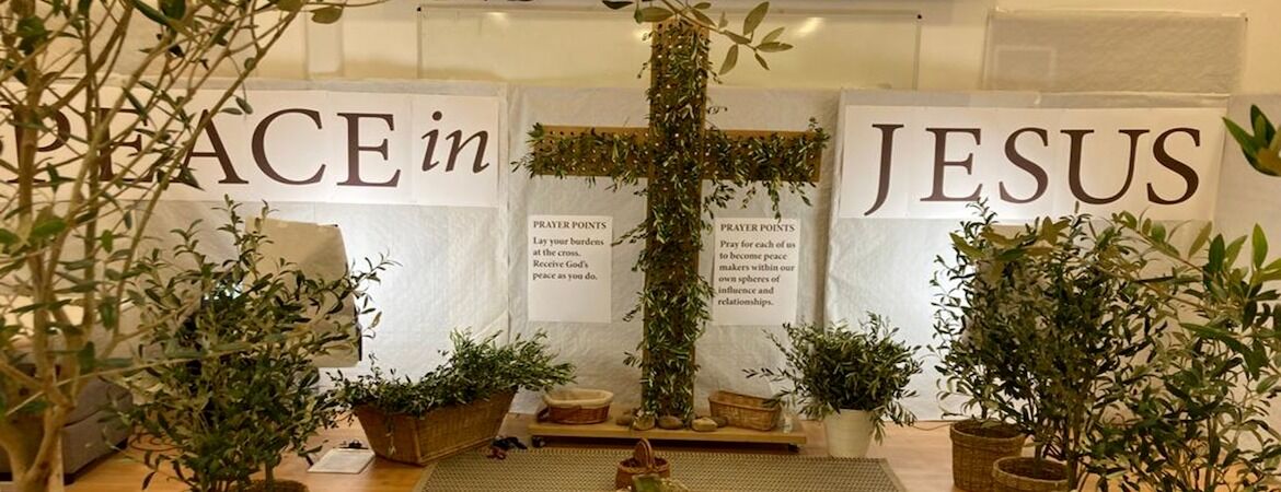 - 'Peace in Jesus' - Olive branch cross. Students were encouraged to lay their burdens at the cross of Jesus and in exchange receive Jesus' peace.