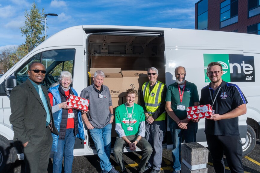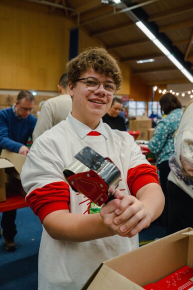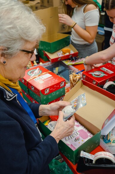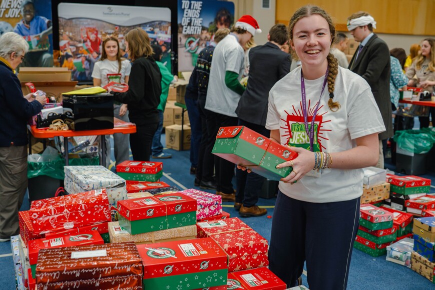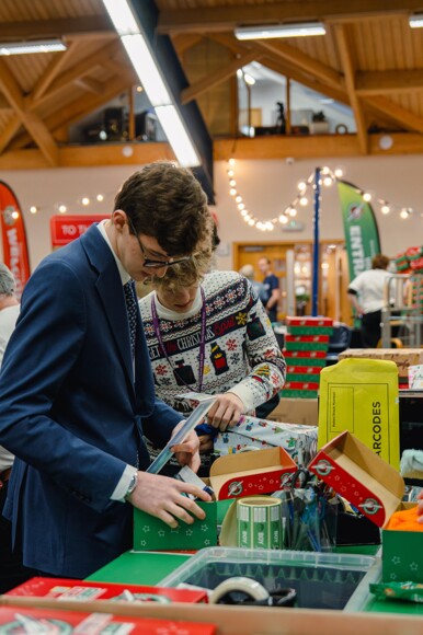 Working alongside around 50 volunteers, our students helped to process an impressive 2,500 shoeboxes in just three hours. Christmas music kept the atmosphere joyful as they labelled, checked, and prepared each gift for its onward journey.